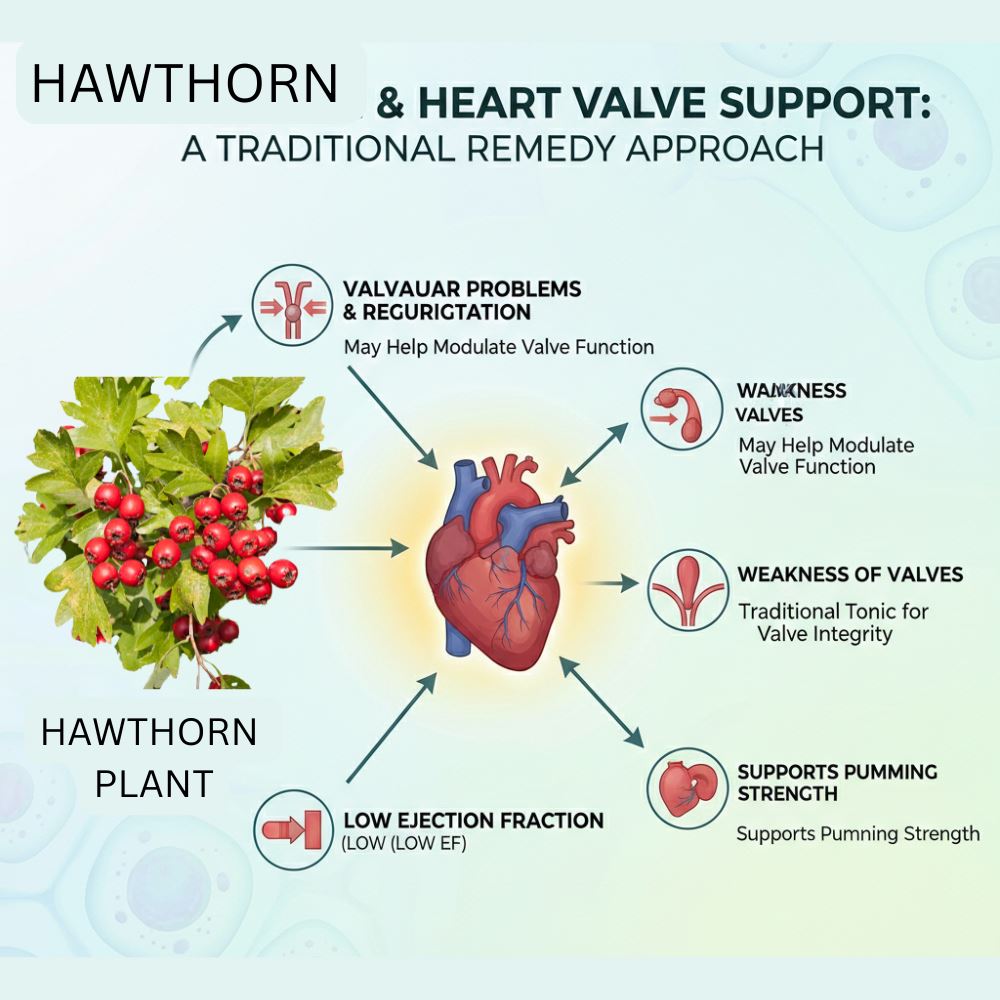 Hawthorn has a long-standing history in European and Asian herbal traditions as a cardiotonic herb. Modern research frequently examines its interaction with coronary circulation, myocardial performance, and vascular elasticity.