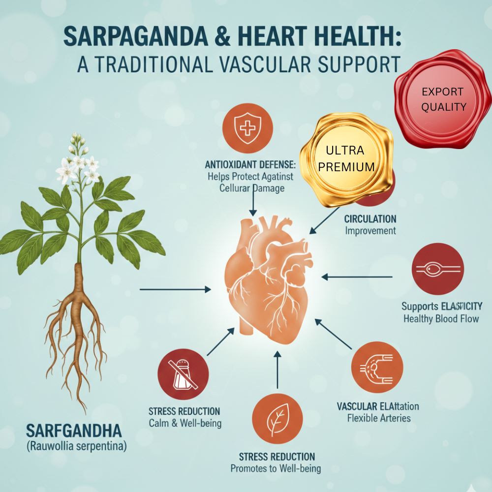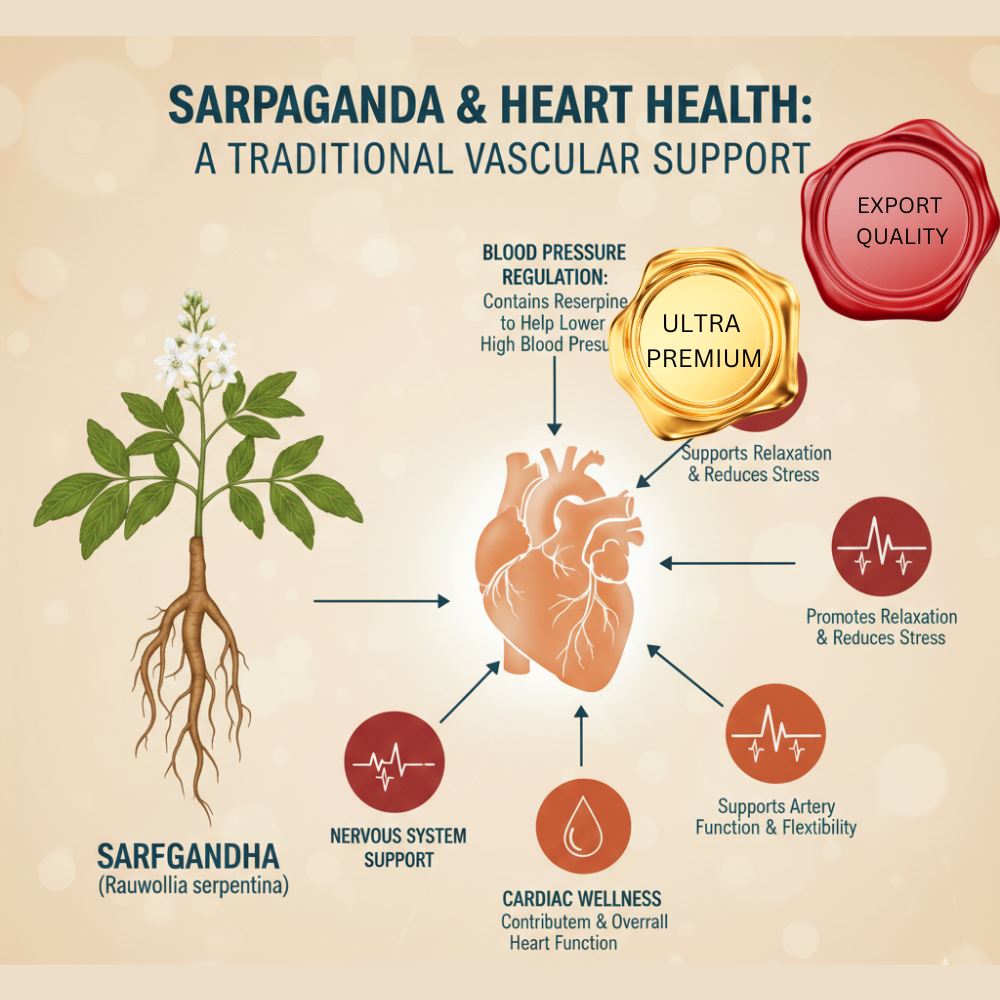 Sarpagandha is traditionally discussed in relation to vascular tone and autonomic nervous system balance. Historical and pharmacological literature explores its influence on peripheral resistance and circulatory rhythm.
