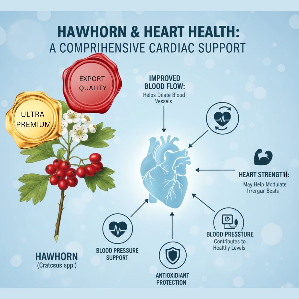 Hawthorn continues to serve as the primary cardiotonic botanical in this formulation. Scientific discussions often focus on its interaction with coronary circulation, vascular elasticity, and myocardial efficiency.