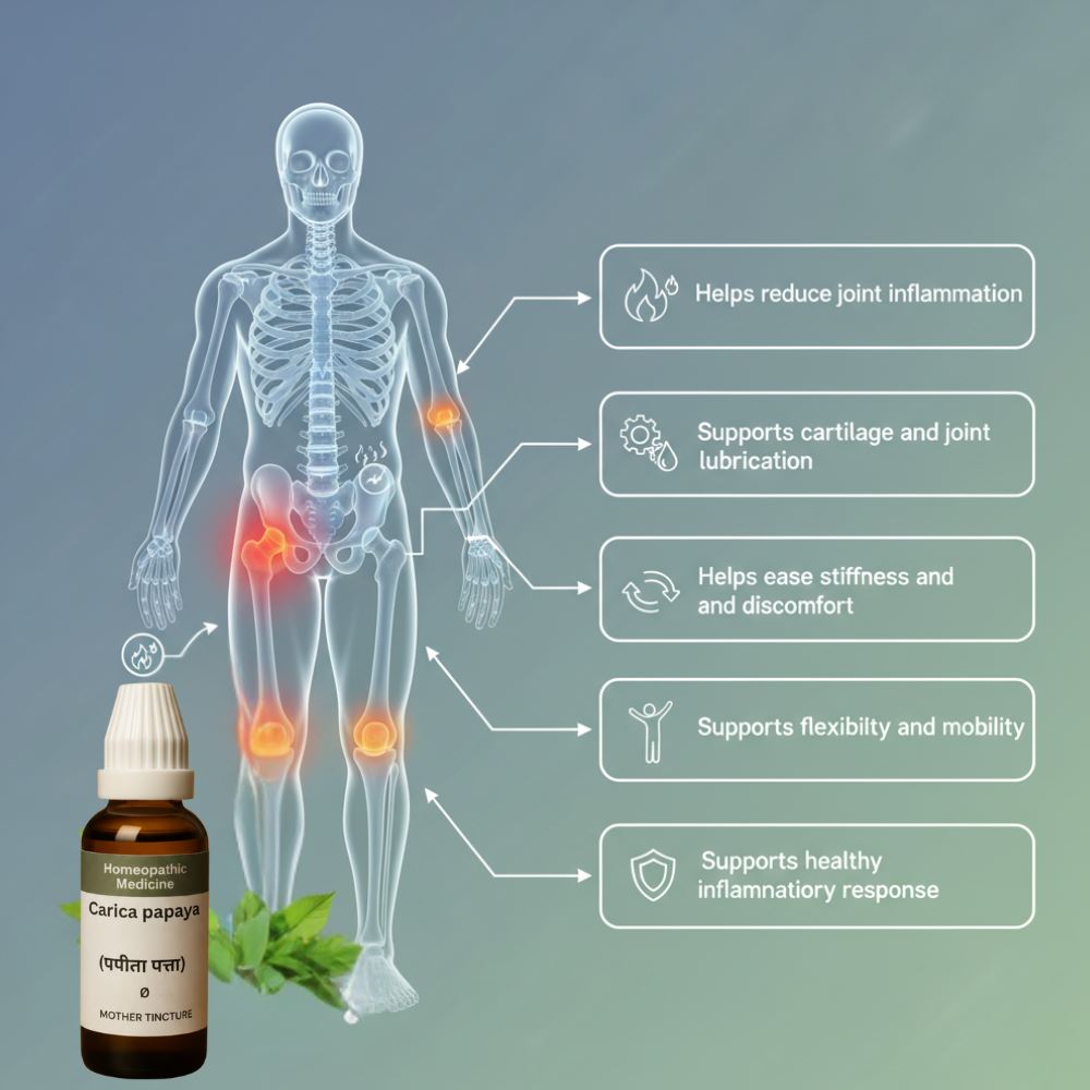 Papaya leaf contains compounds that help regulate inflammatory responses, supporting comfort across multiple body systems.