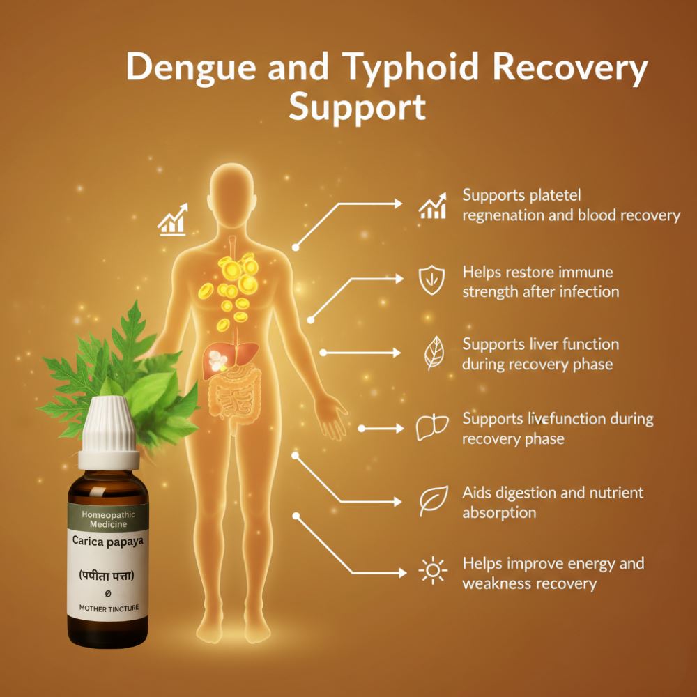 Prepared in Mother Tincture form, this formulation preserves the full spectrum of naturally occurring phytochemicals, enzymes, and bioactive compounds found in papaya leaves, allowing multi-pathway support rather than single-target action.