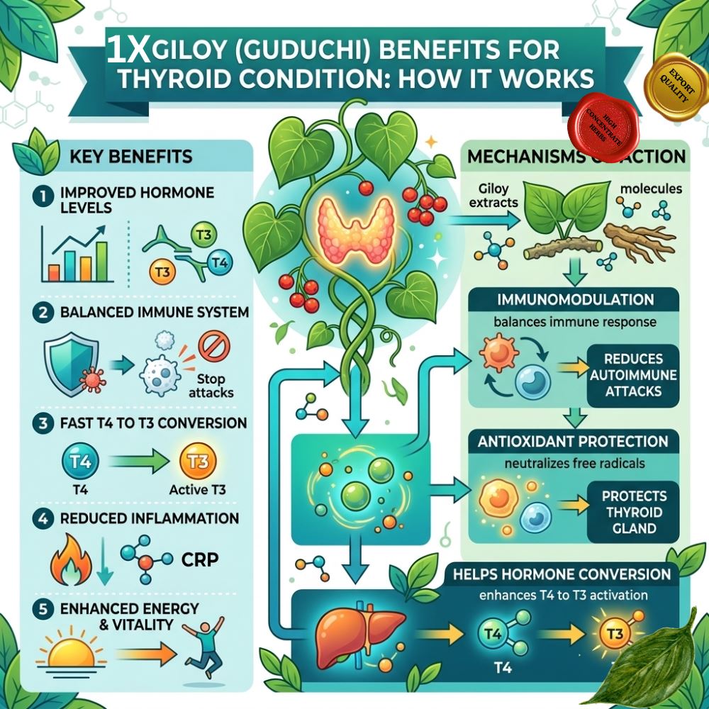 Giloy contains natural antioxidants that help reduce oxidative stress. Oxidative stress can affect cellular metabolism and endocrine function.