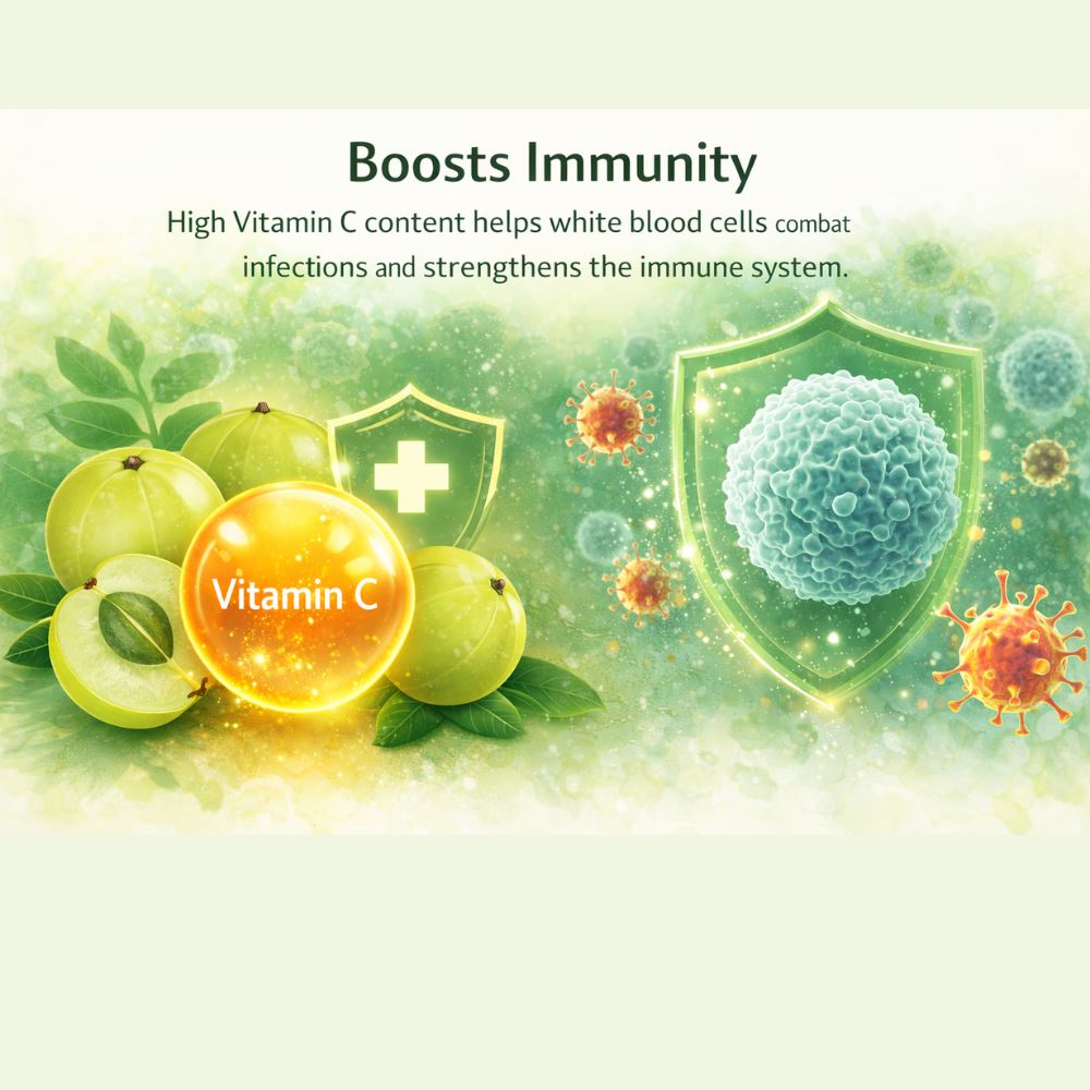 Studies show Amla extract improves immune response and reduces oxidative stress markers.