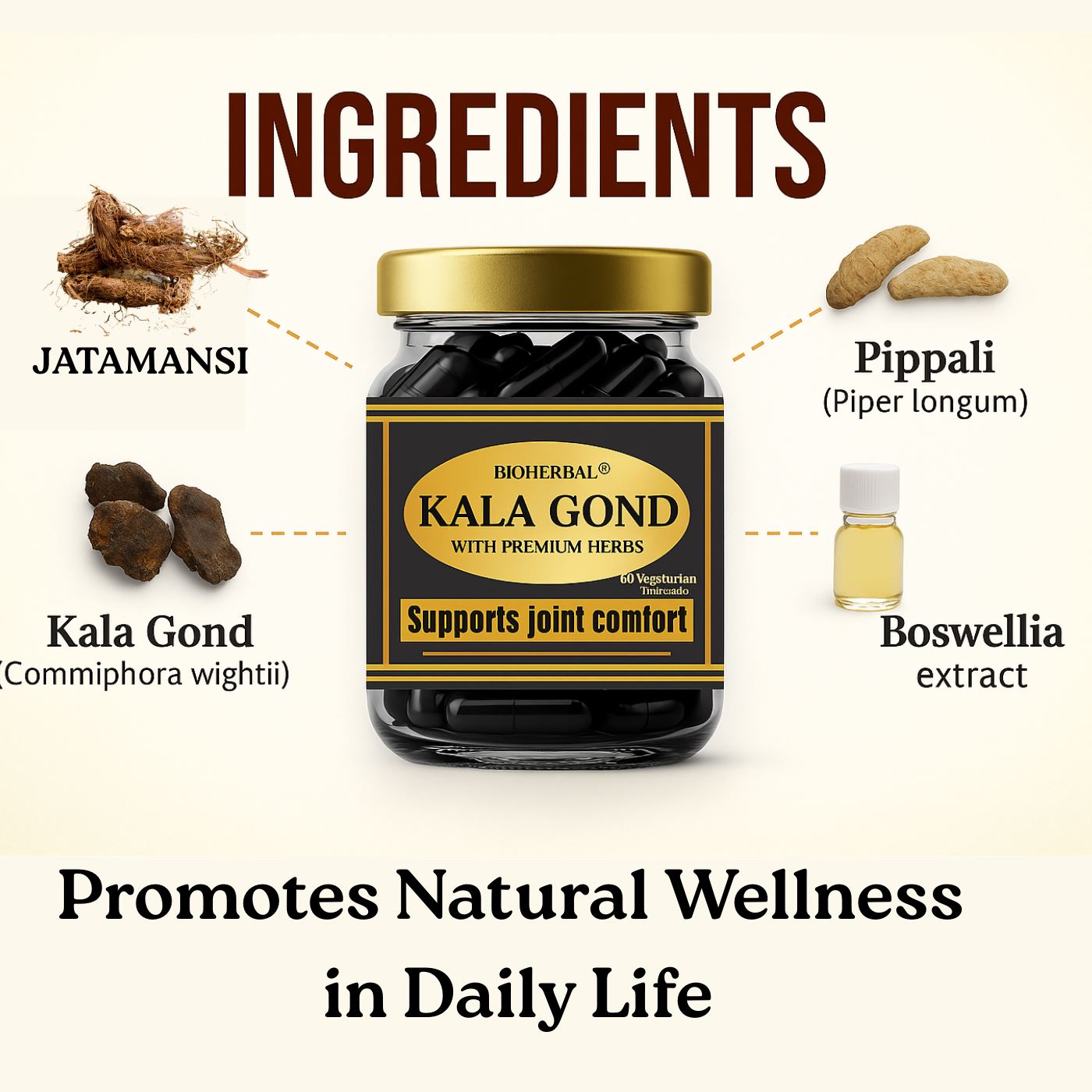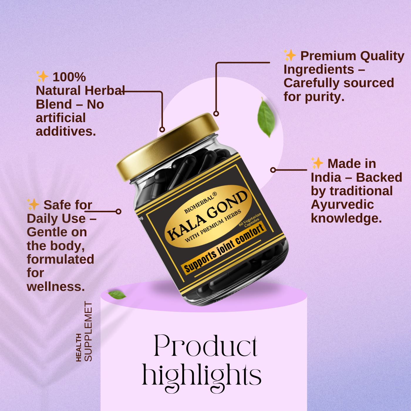 Bioherbal® Advanced Kala Gond Capsules ek multi-herbal premium formulation hai jo joints ke daily comfort, flexibility, lubrication, strength & body recovery ko naturally support karta hai.