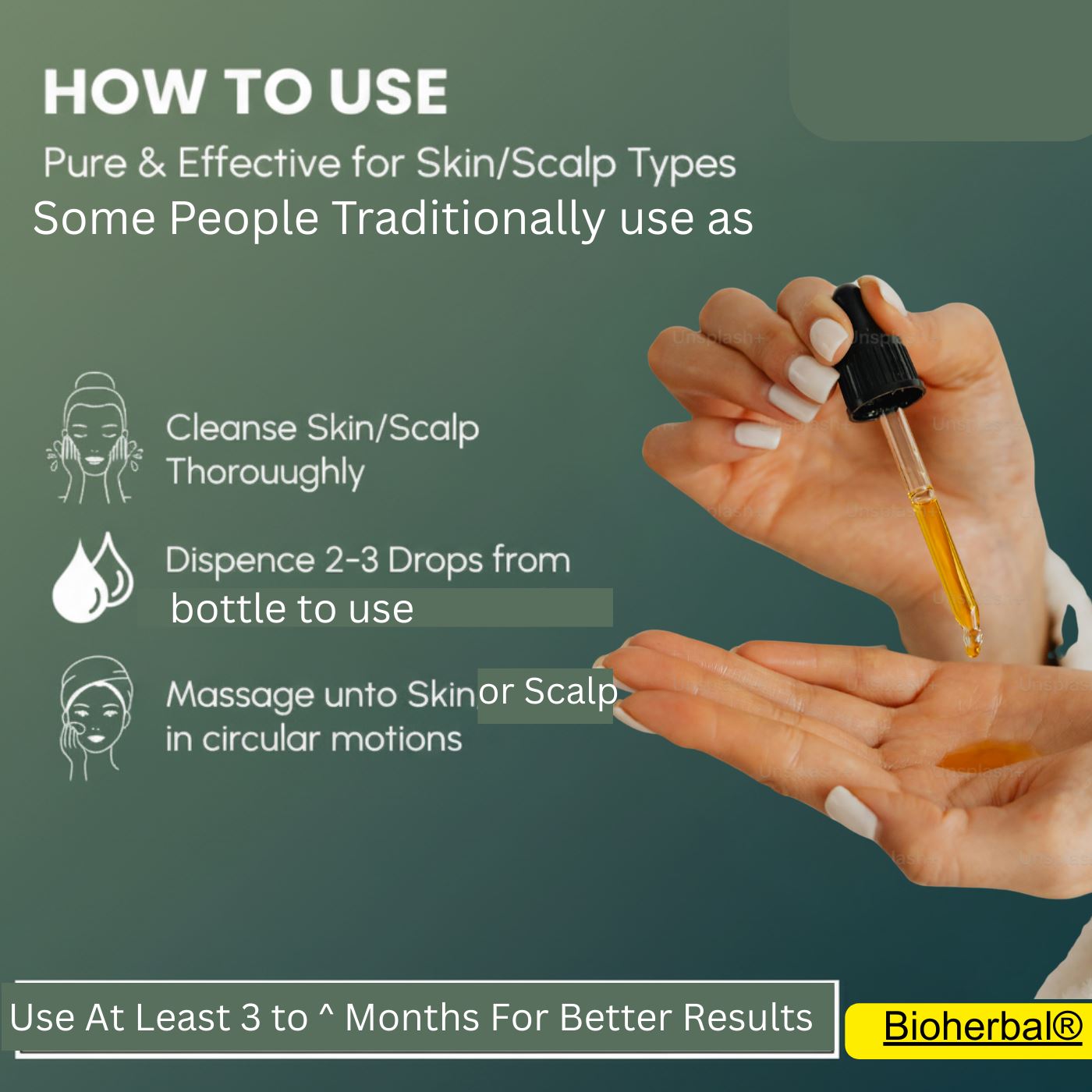 Holistically it is mentioned mostly ,Apply a small quantity to the scalp and hair roots. Massage gently for 5–10 minutes. Leave for 30–60 minutes or overnight, then wash with a mild shampoo.